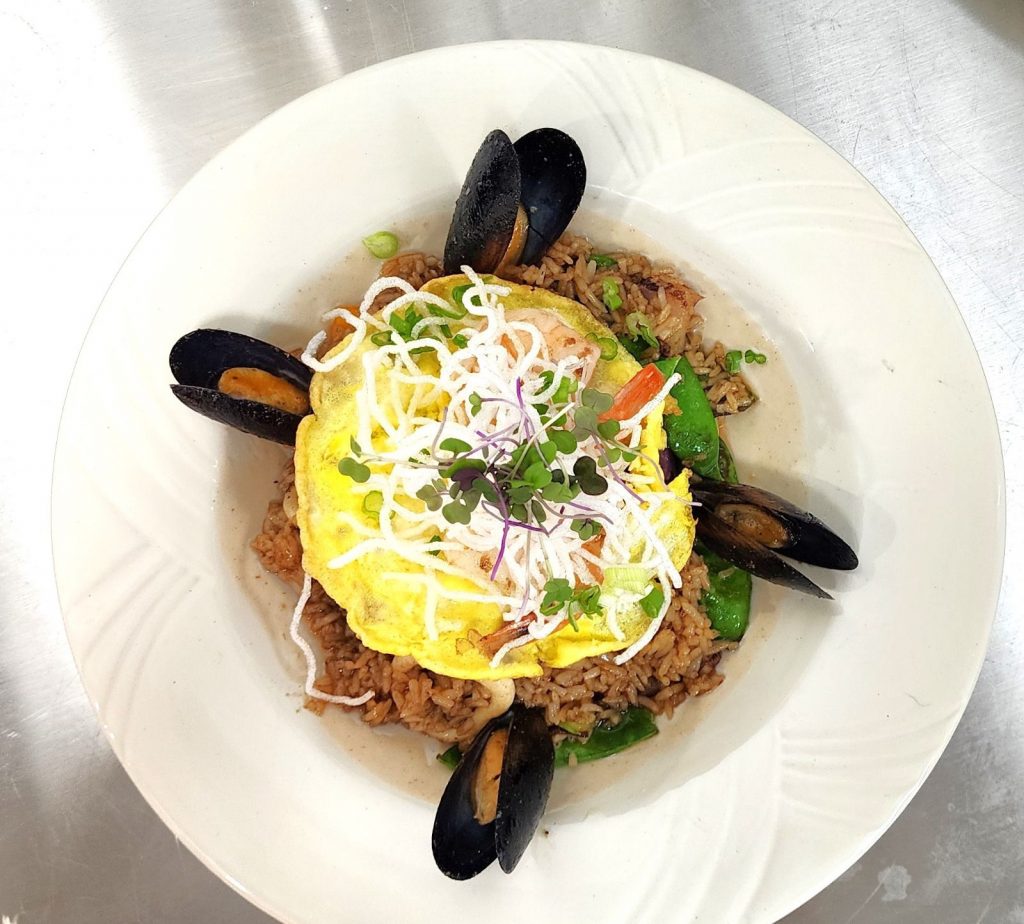 Is a Peruvian-style fried rice made with soy sauce, eggs, green onions, and meat, blending Chinese cooking techniques with Peruvian flavors.